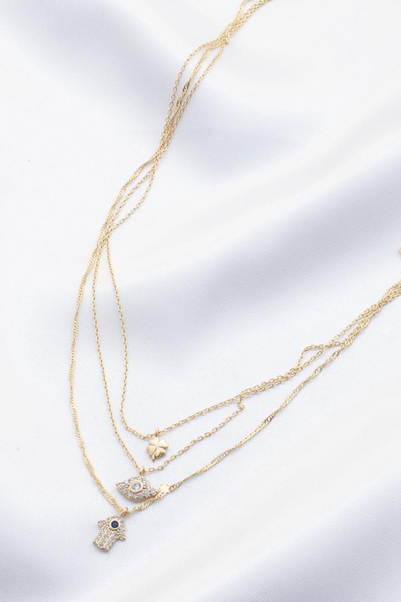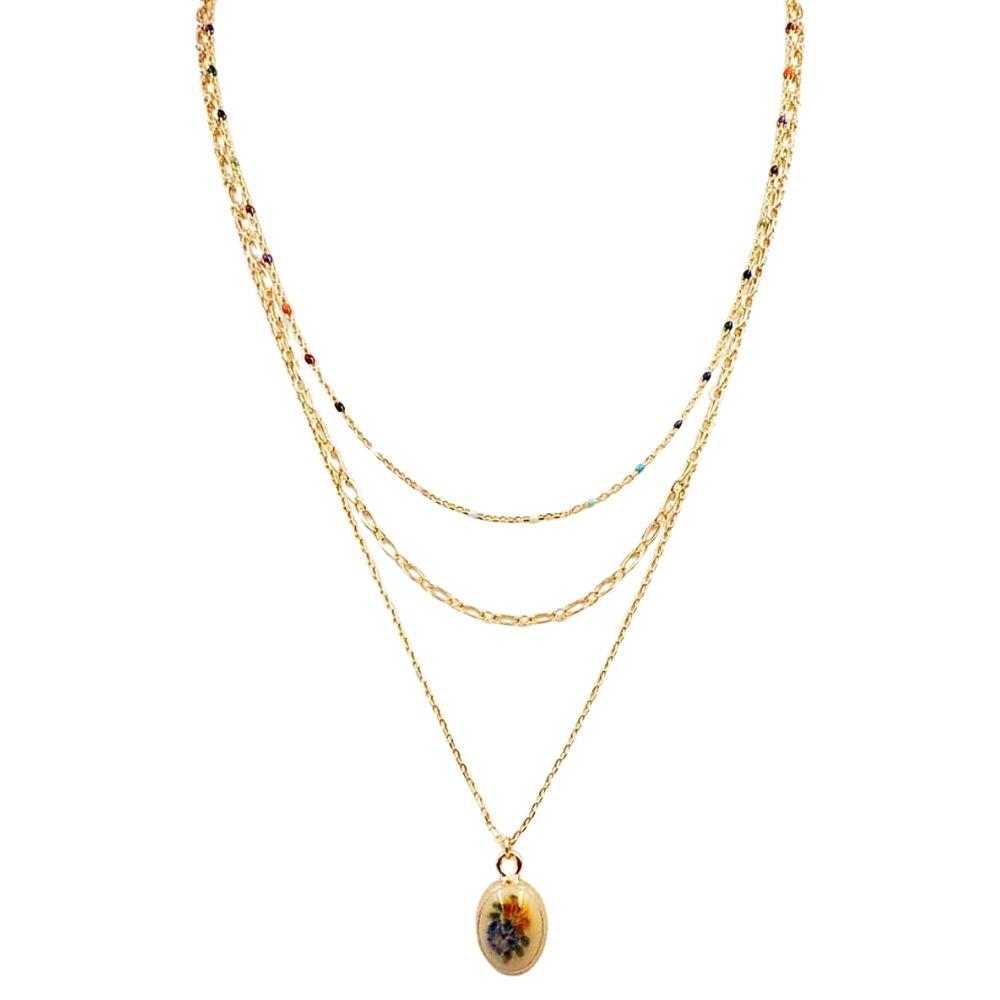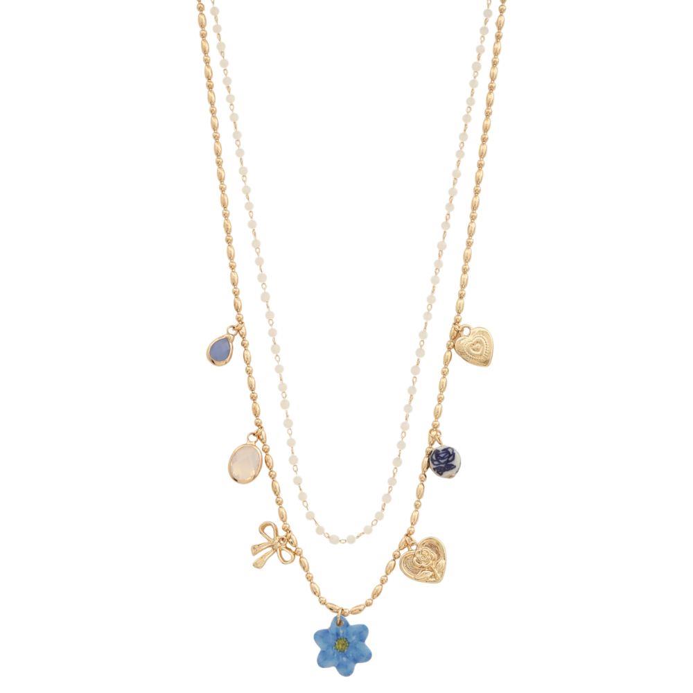 CERAMIC PATTERN MULTI CHARM LAYERED NECKLACE
