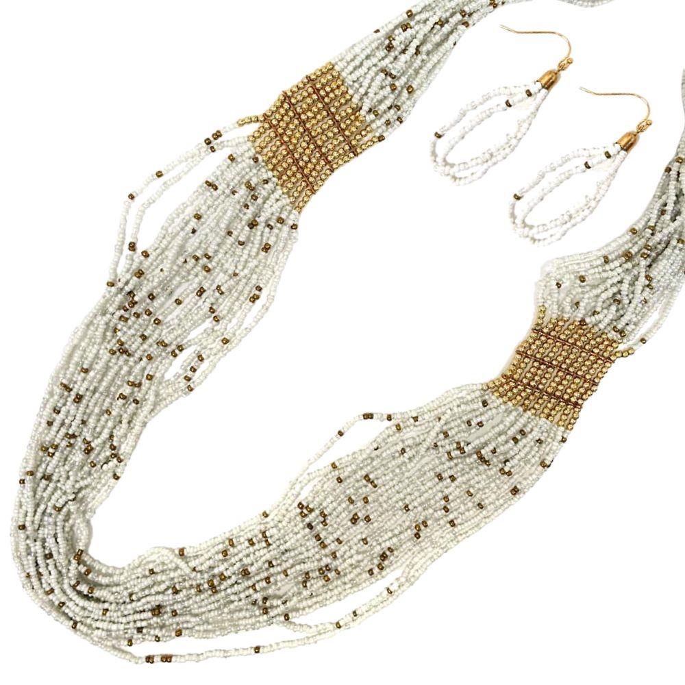PEARL MULTI STRAND STATEMENT NECKLACE EARRING SET