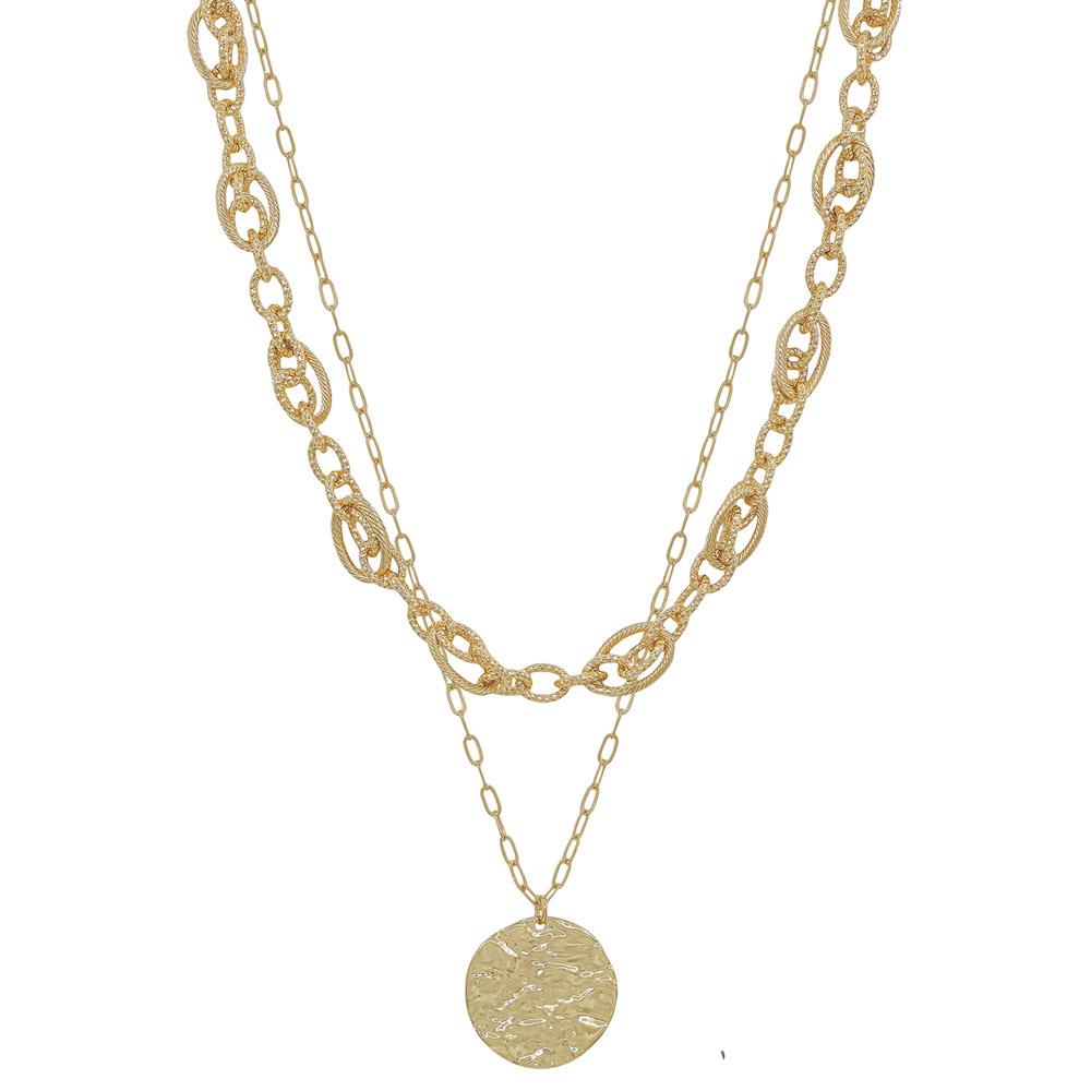 MEDALLION OVAL LINK CHAIN LAYERED METAL NECKLACE