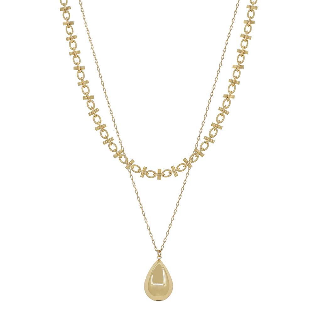 LAYERED DOUBLE TEARDROP PENDANT SHORT NECKLACE