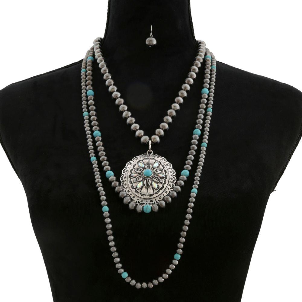 WESTERN MULTI CHARM BEADED LAYERED NECKLACE