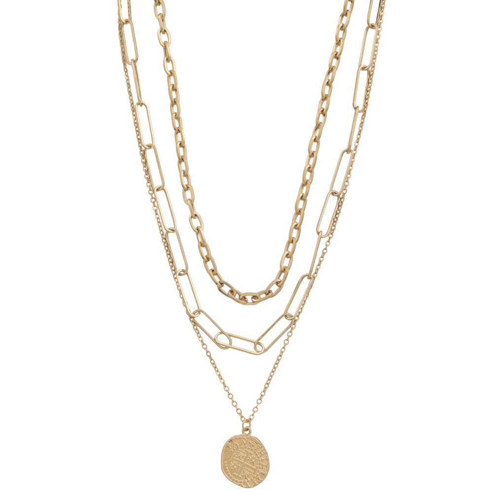 3 LAYERED THIN OVAL TEXTURED CHAIN COIN PENDANT NECKLACE