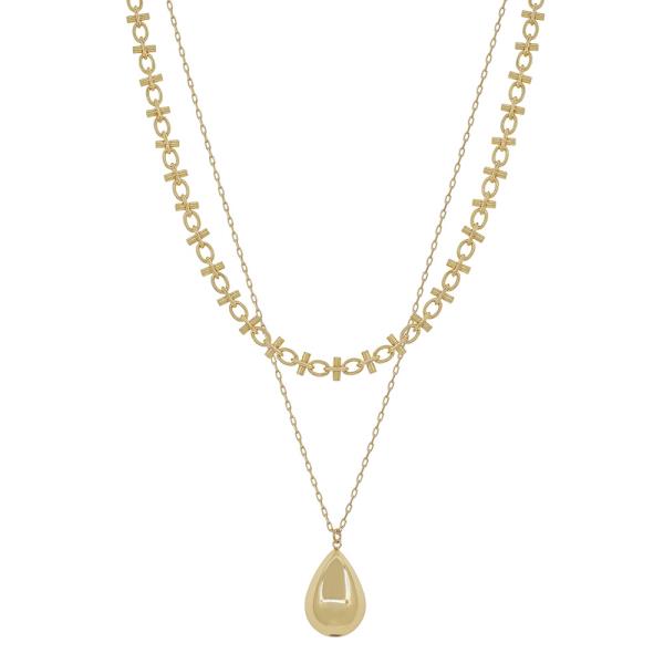 LONG TEARDROP BEAD OVAL LINK LAYERED NECKLACE