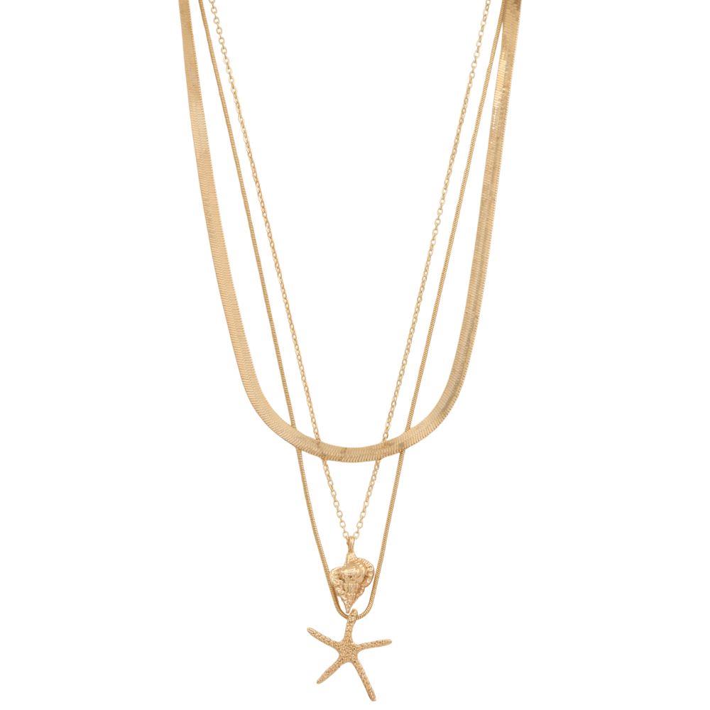 SDJ STARFISH SEASHELL CHARM LAYERED METAL NECKLACE