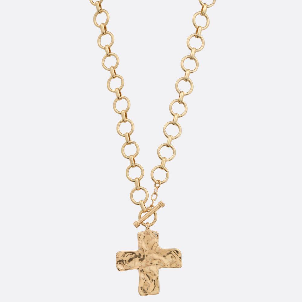 SDJ HAMMERED METAL CROSS PENDANT TOGGLE CLASP NECKLACE