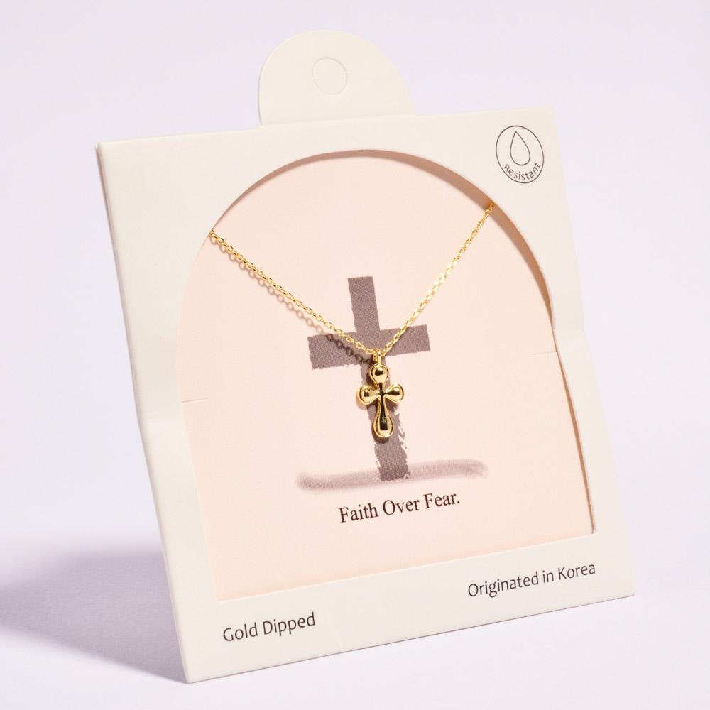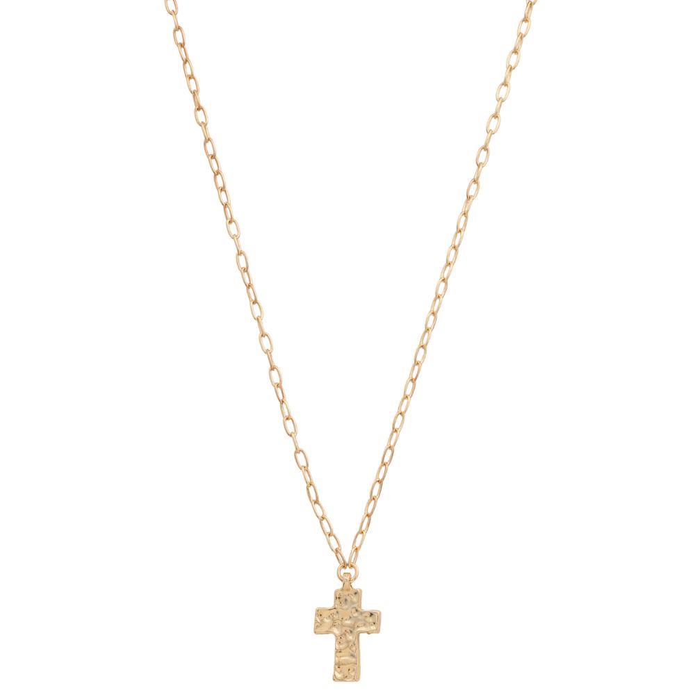 CROSS SHAPED GOLD-DIPPED PENDANT SHORT NECKLACE WATER RESISTANT
