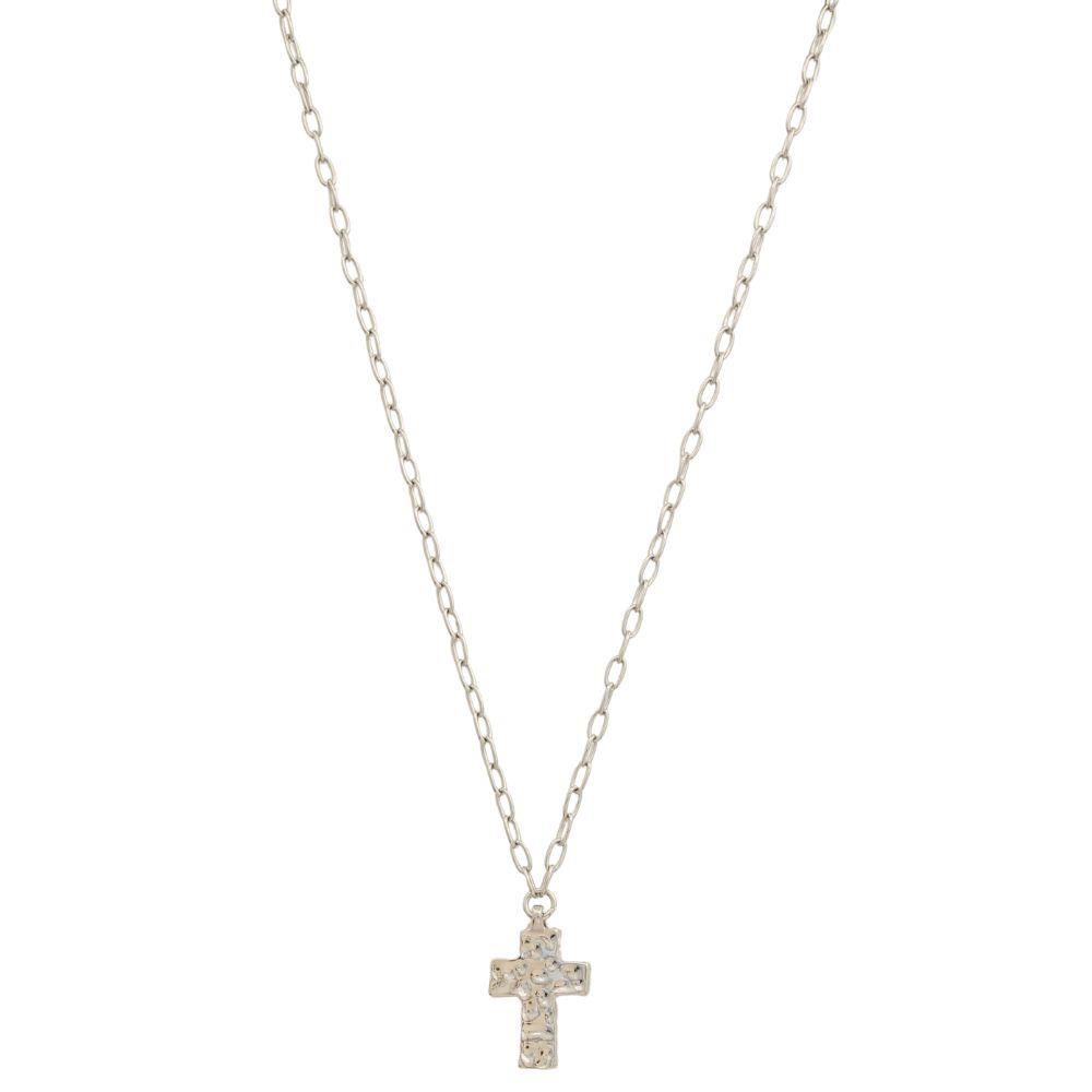HAMMERED METAL CROSS PEARL BEAD NECKLACE