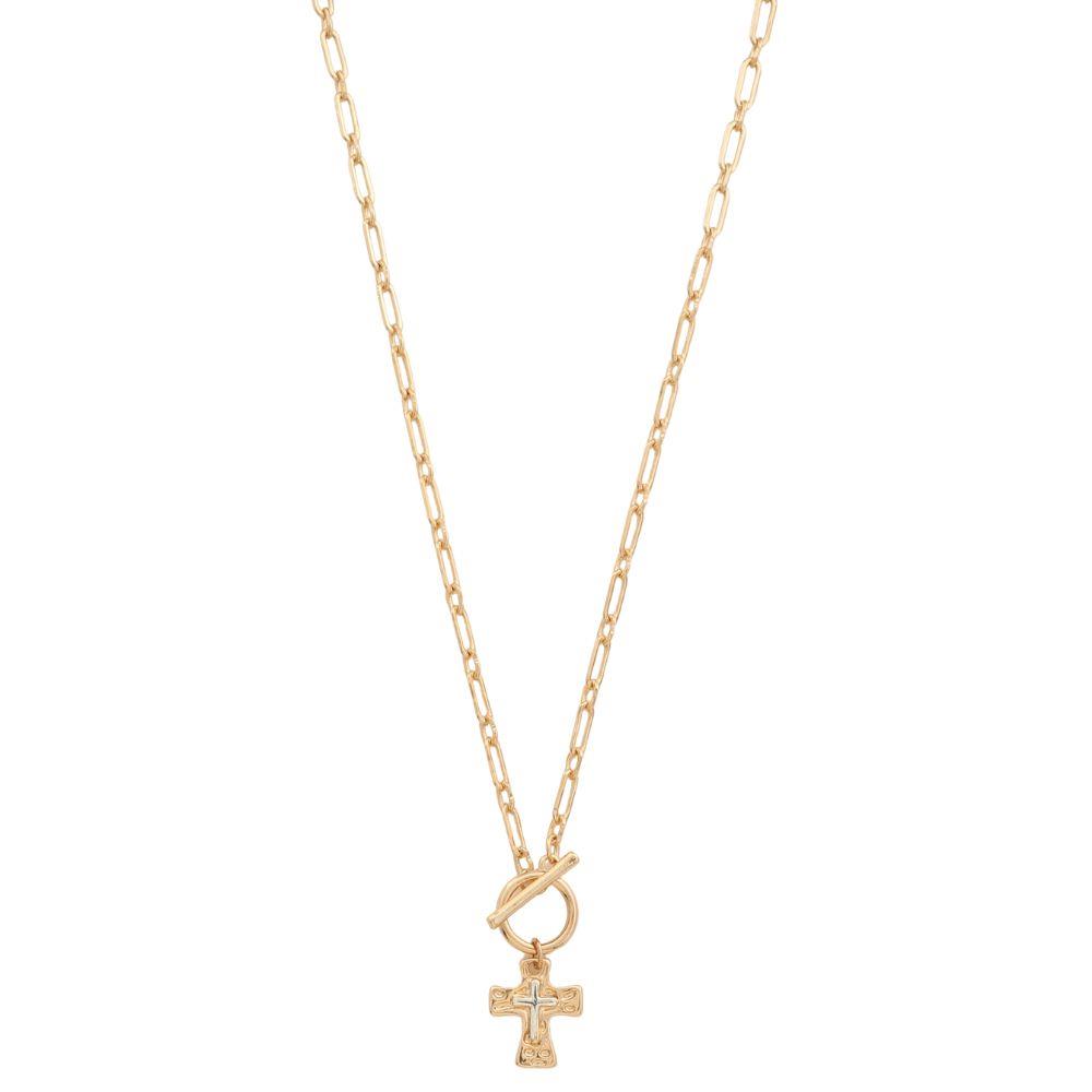 TWO TONE CROSS TOGGLE CLASP METAL NECKLACE