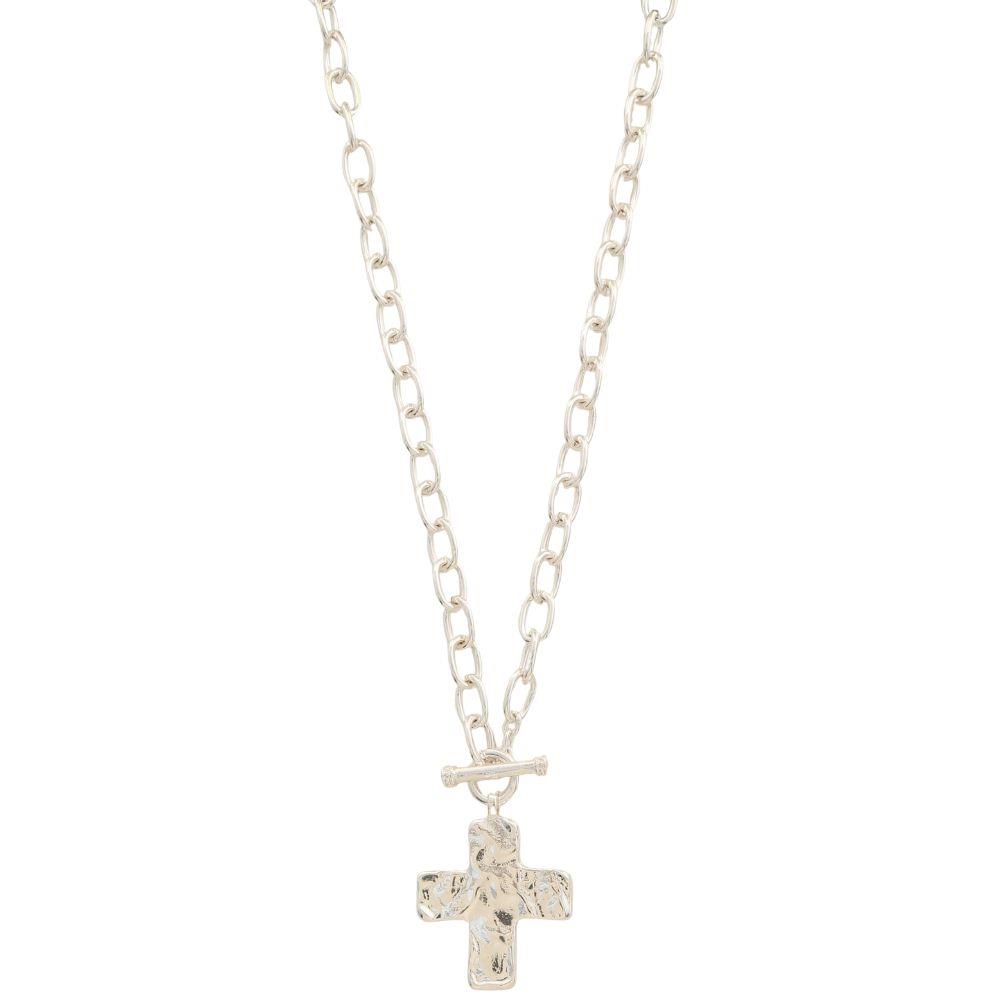 HAMMERED CROSS PENDANT TOGGLE WATER RESISTANT NECKLACE SET