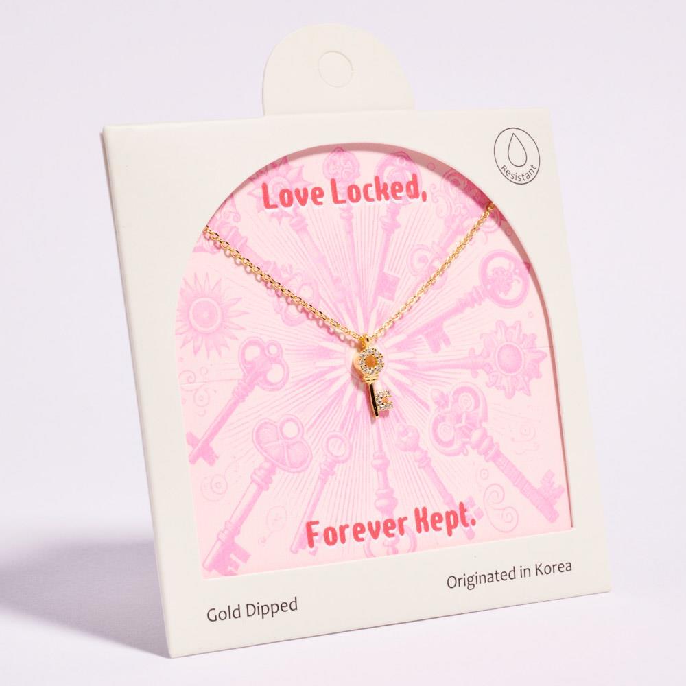 KEY SHAPED GOLD-DIPPED PENDANT SHORT NECKLACE WATER RESISTANT