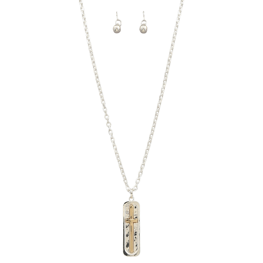 METAL CROSS PENDANT NECKLACE EARRING SET