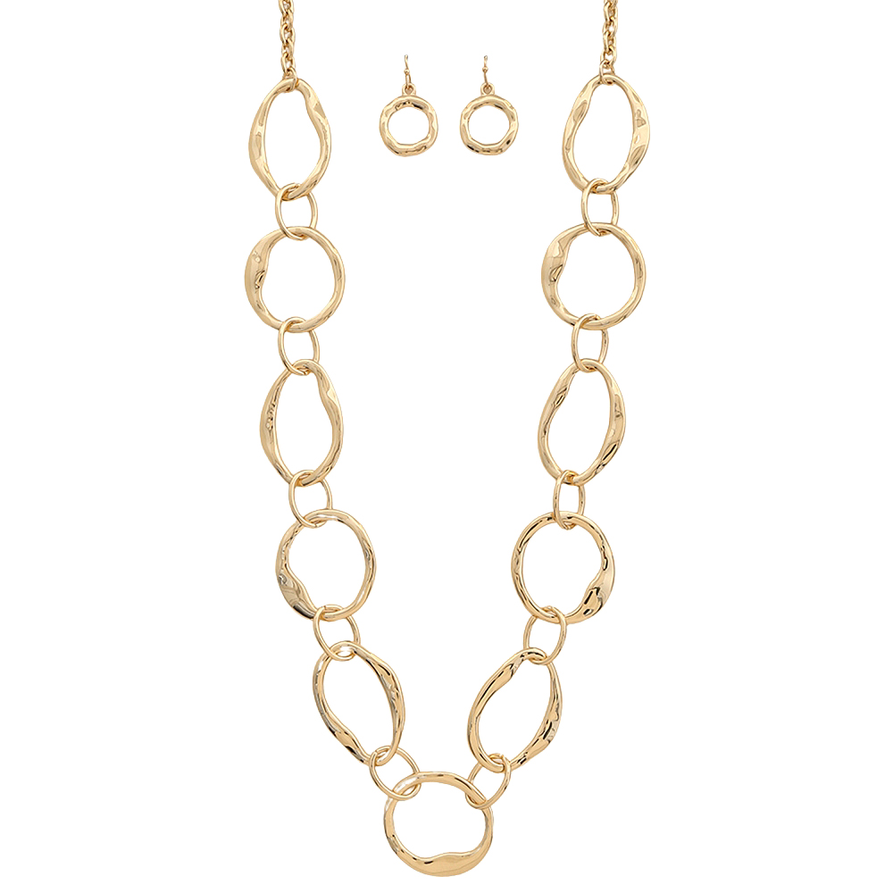 METAL TWO TONE LINK NECKLACE EARRING SET