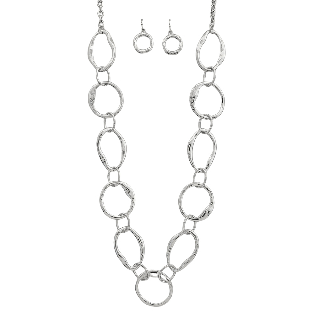 HAMMERED METAL ROUND PLATES WITH HIGH-SHINE FINISH CHUNKY STATEMENT NECKLACE EARRING SET