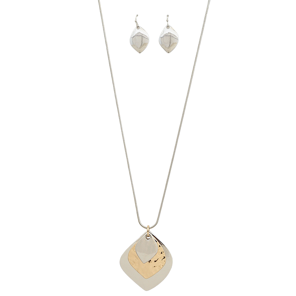 METAL SHAPE PENDANT NECKLACE EARRING SET