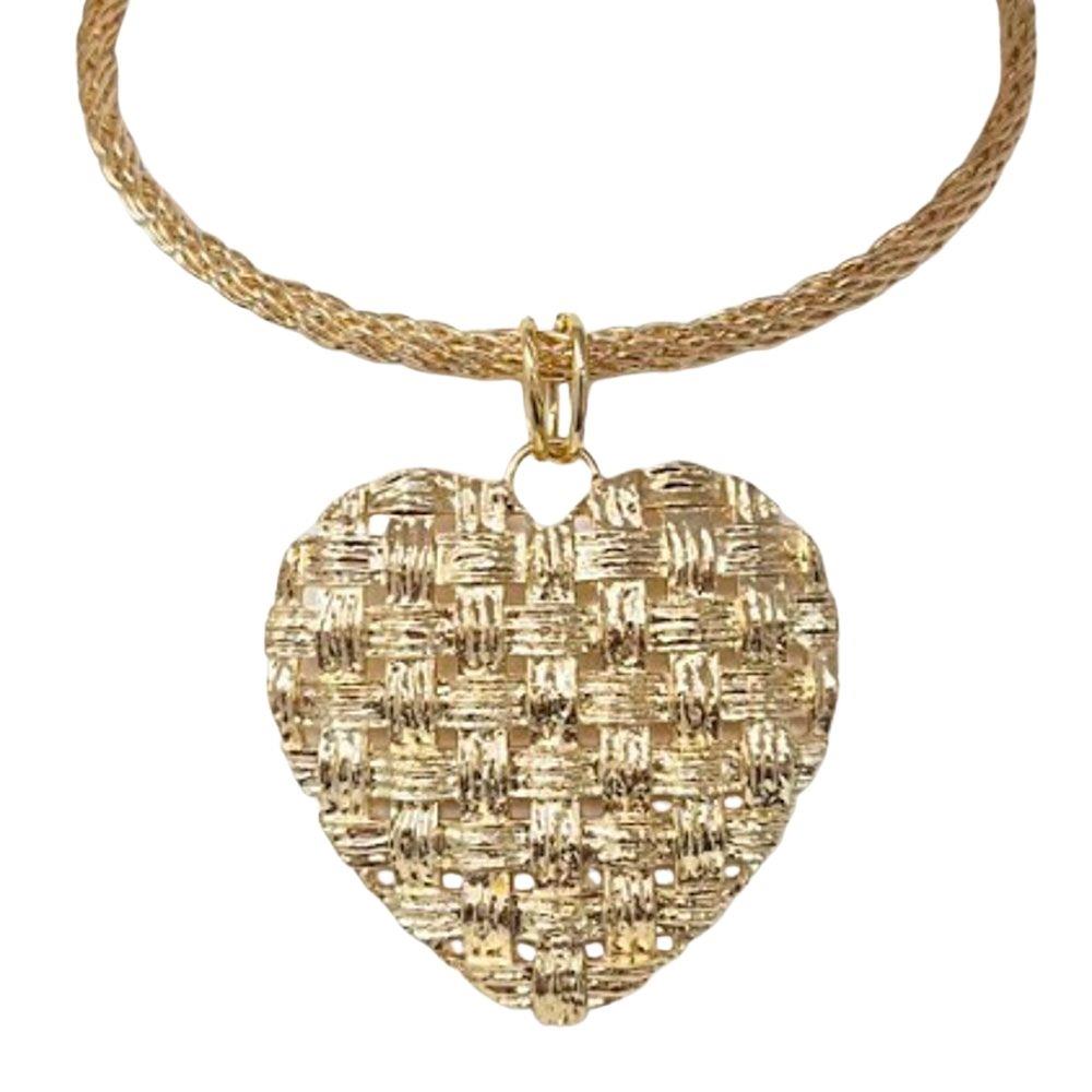 METAL TEXTURED HEART PENDANT NECKLACE EARRING SET