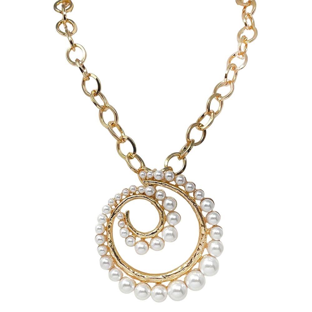 PEARL ROUND ORNAMENT PENDANT STATEMENT NECKLACE EARRING SET