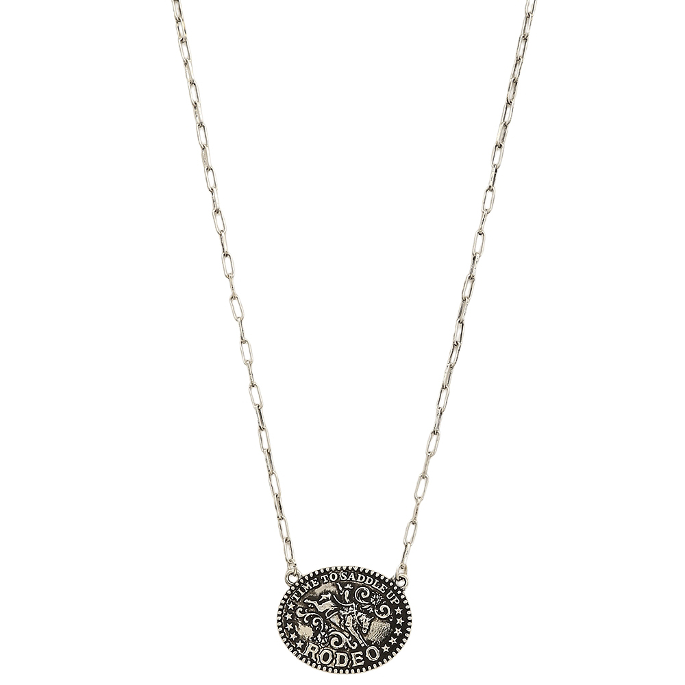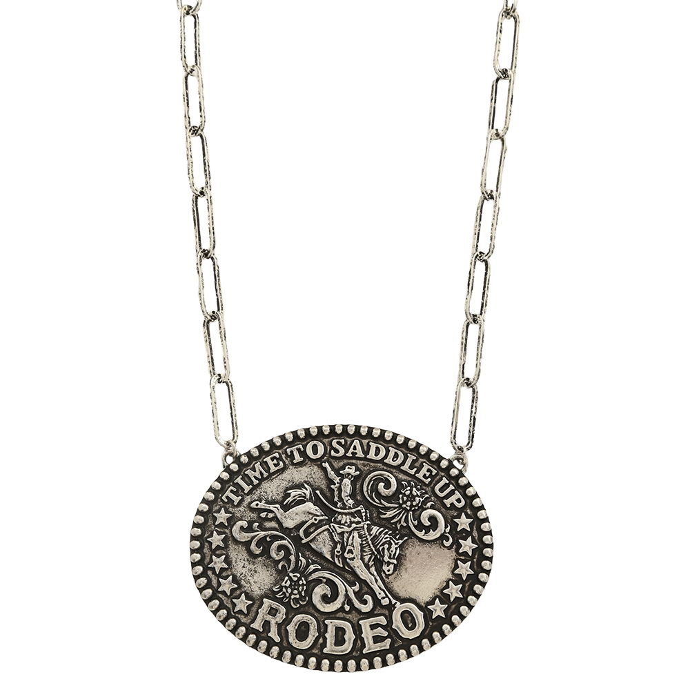OVAL TIME TO SADDLE UP RODEO PENDANT CHAIN LINK NECKLACE