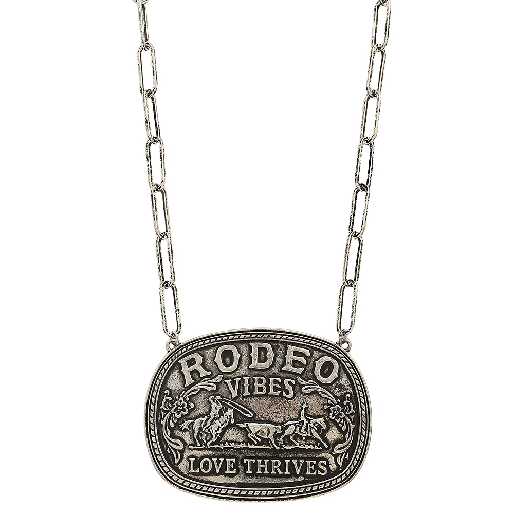 ROUND RODEO VIBES LOVE THRIVES PENDANT CHAIN LINK NECKLACE