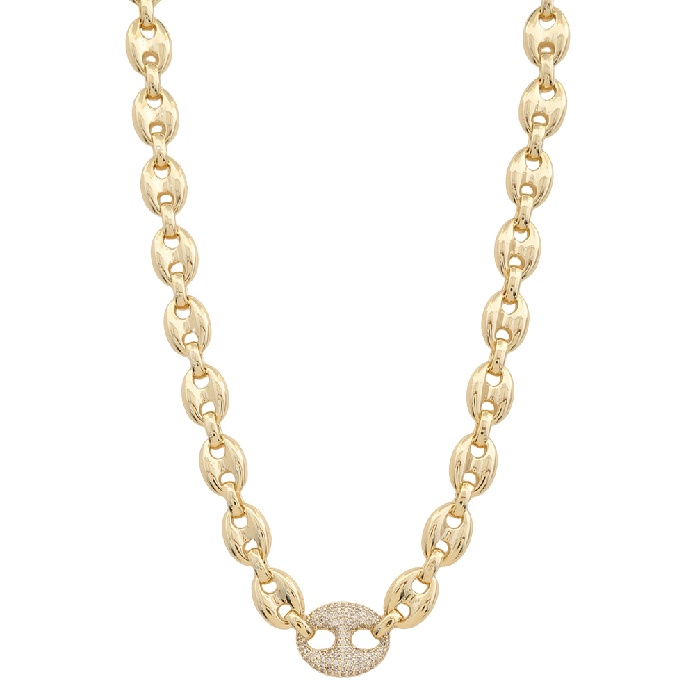 ALL AROUND HOLLOW PUFF ANCHOR LINK NECKLACE