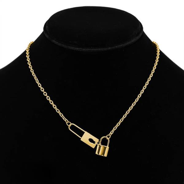 14K PLATED LOCK KEY CHARM TWO TONE NECKLACE