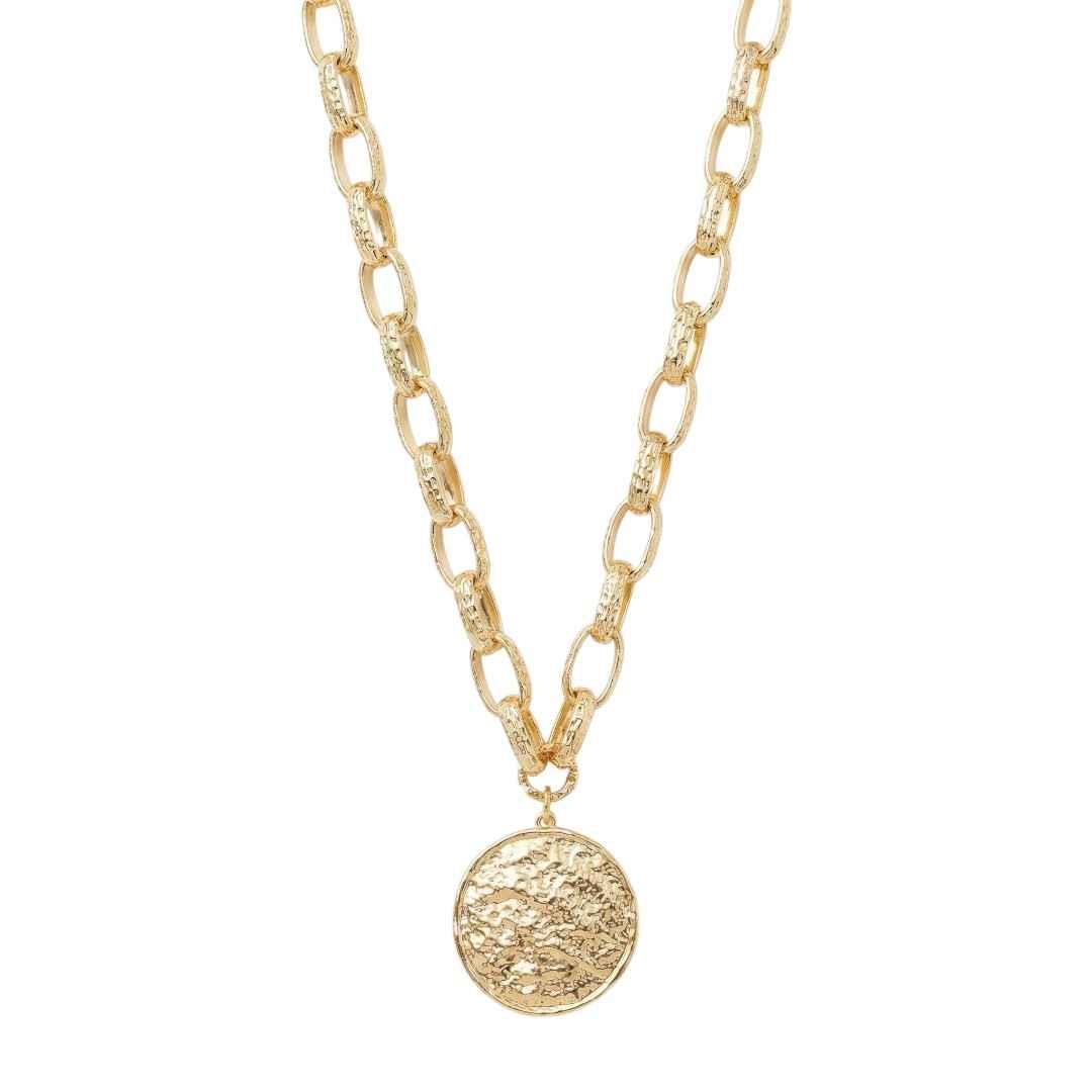 TEXTURED COIN CHAIN LINK METAL NECKLACE