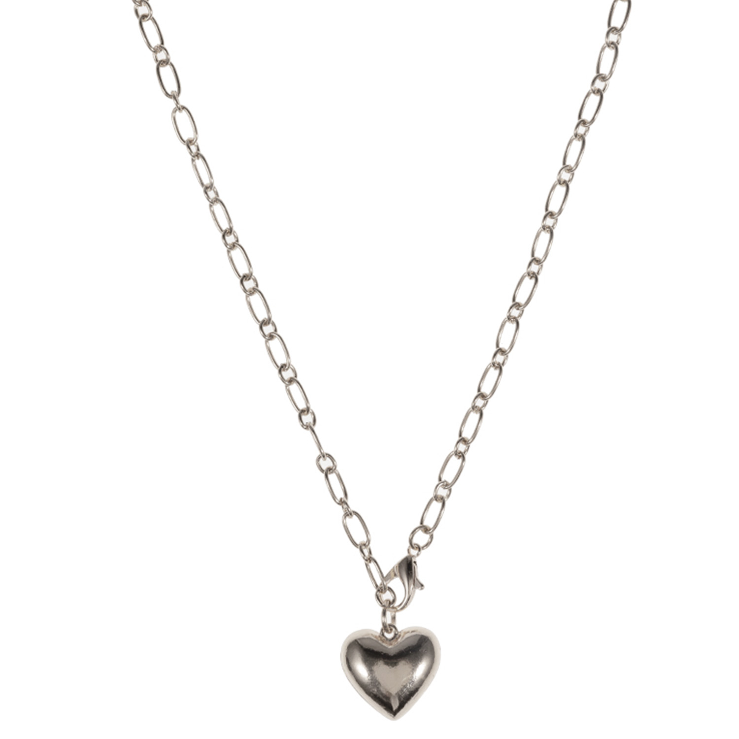 RHINESTONE HEART PENDANT OVAL LINK METAL NECKLACE
