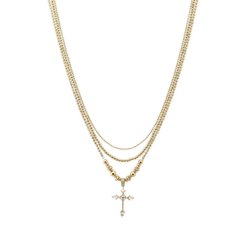 3 LAYERED CHAIN CROSS PENDANT NECKLACE