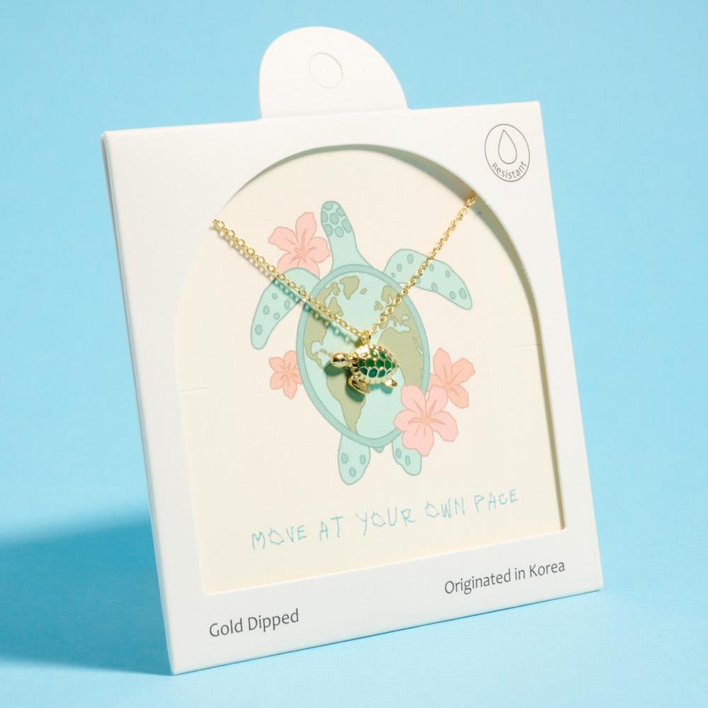 WATER RESISTANT TURTLE SHAPED GOLD-DIPPED PENDANT SHORT NECKLACE