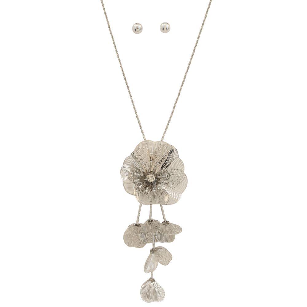 SCULPTED METAL FLOWER STATEMENT NECKLACE EARRING SET