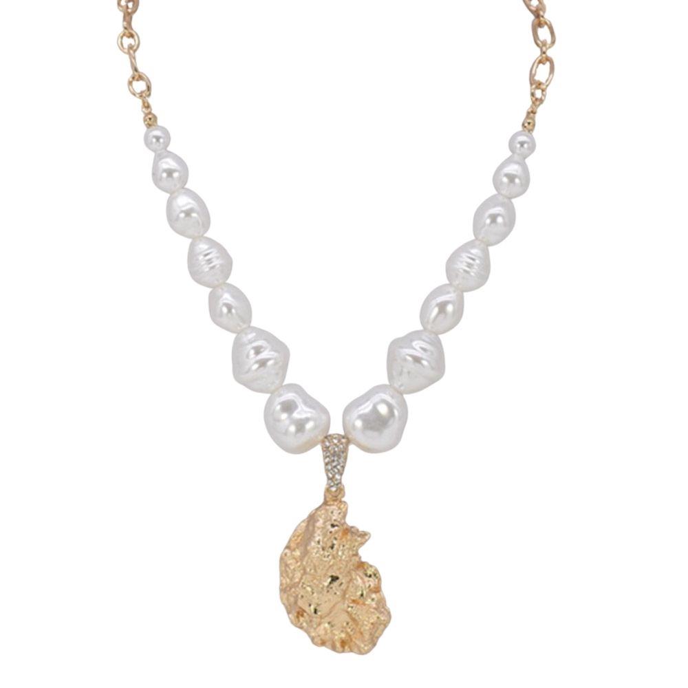 OVAL PEARL PENDANT METAL NECKLACE