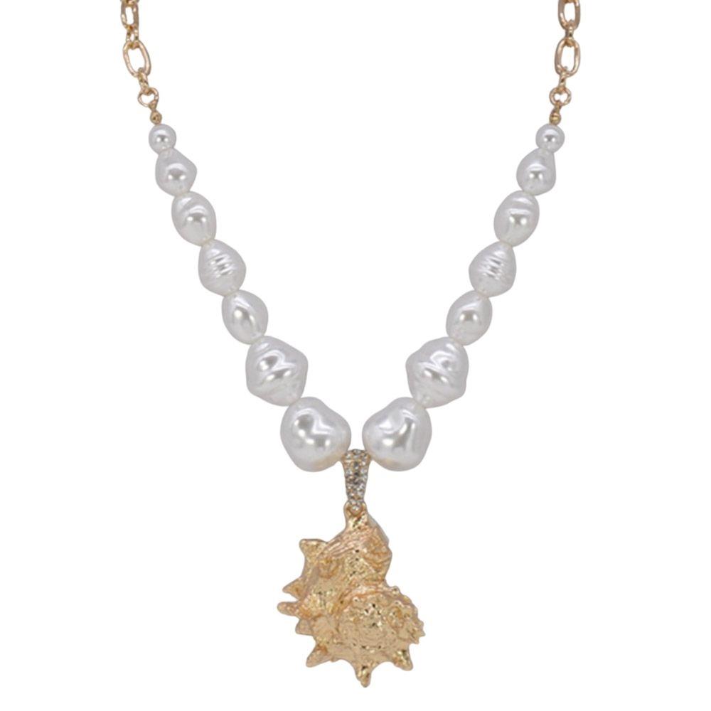TEXTURED METAL PEARL BEADED SHELL PENDANT NECKLACE