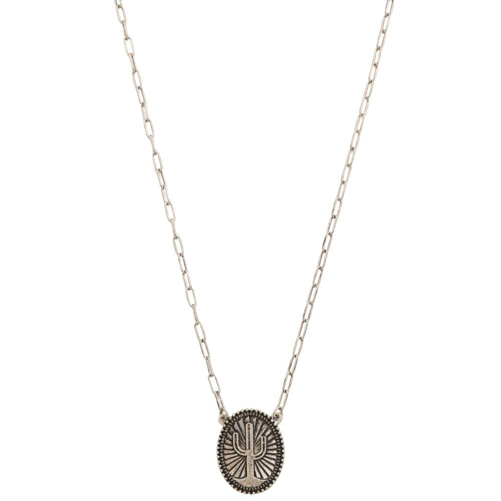WESTERN OVAL CACTUS PENDANT METAL NECKLACE