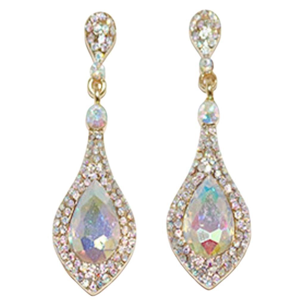TEARDROP COLOR RHINESTONE DANGLE EARRING