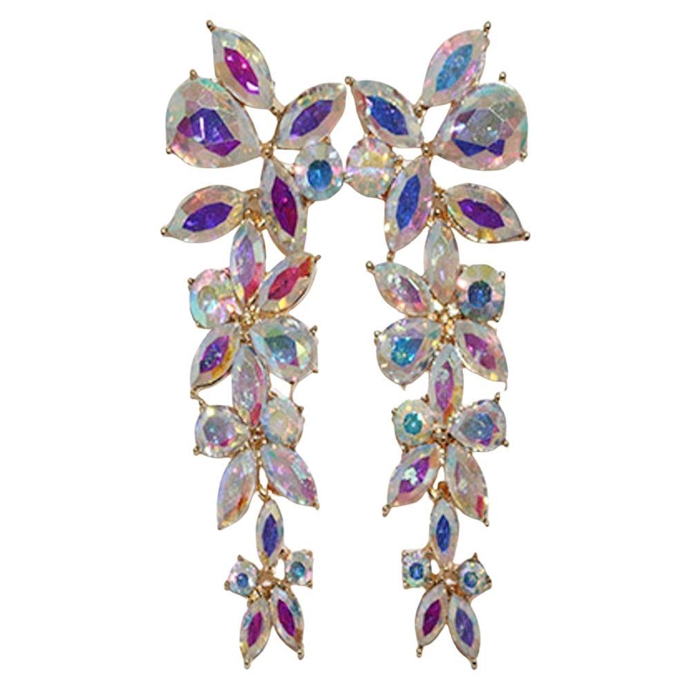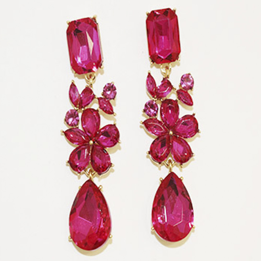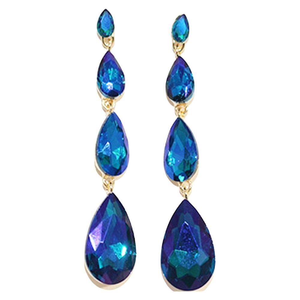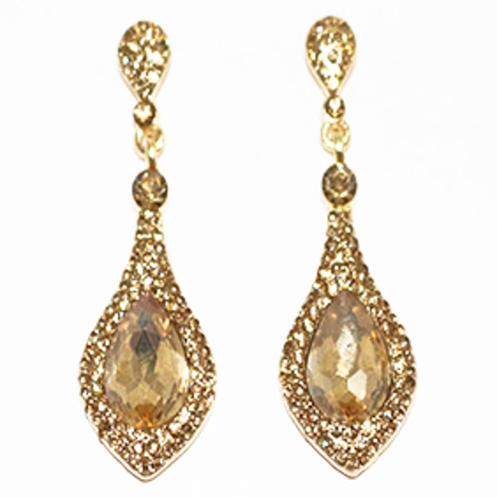 WIDE TEARDROP STONE EVENING DANGLE EARRING