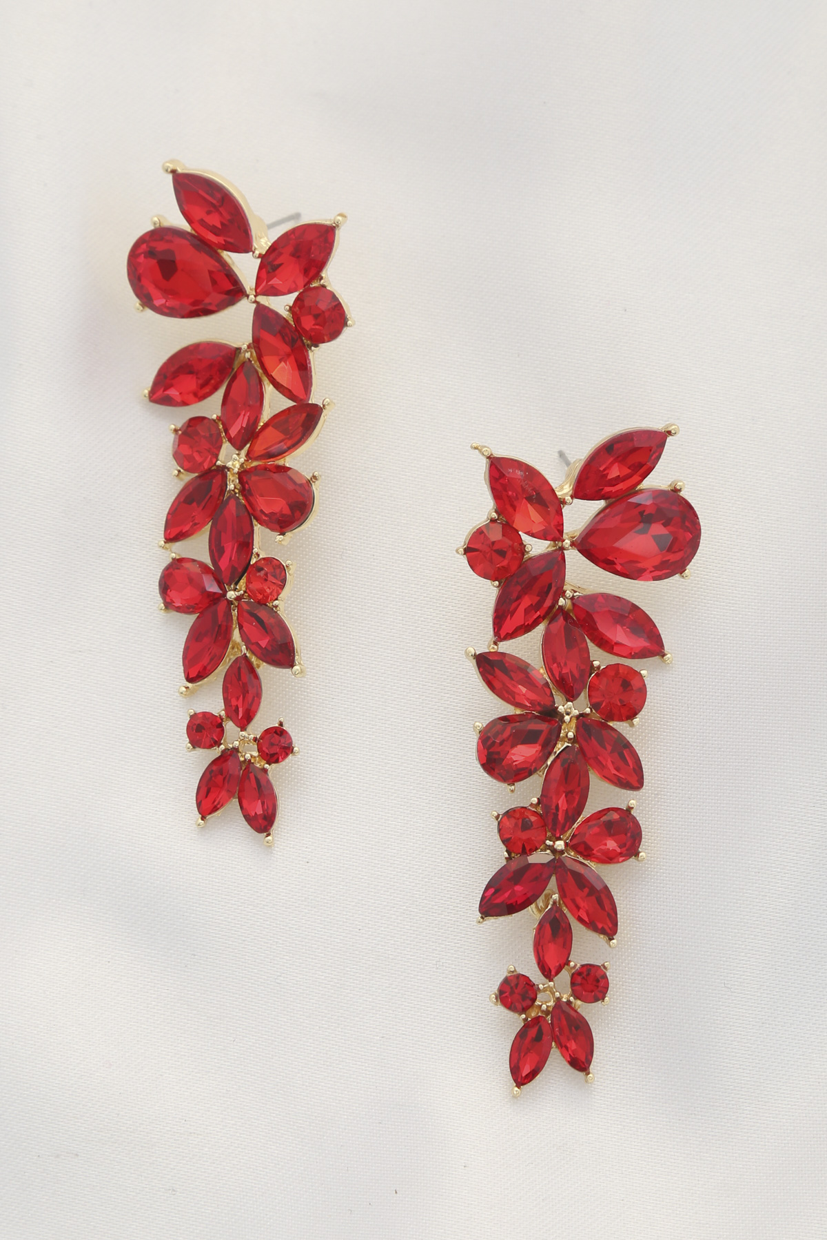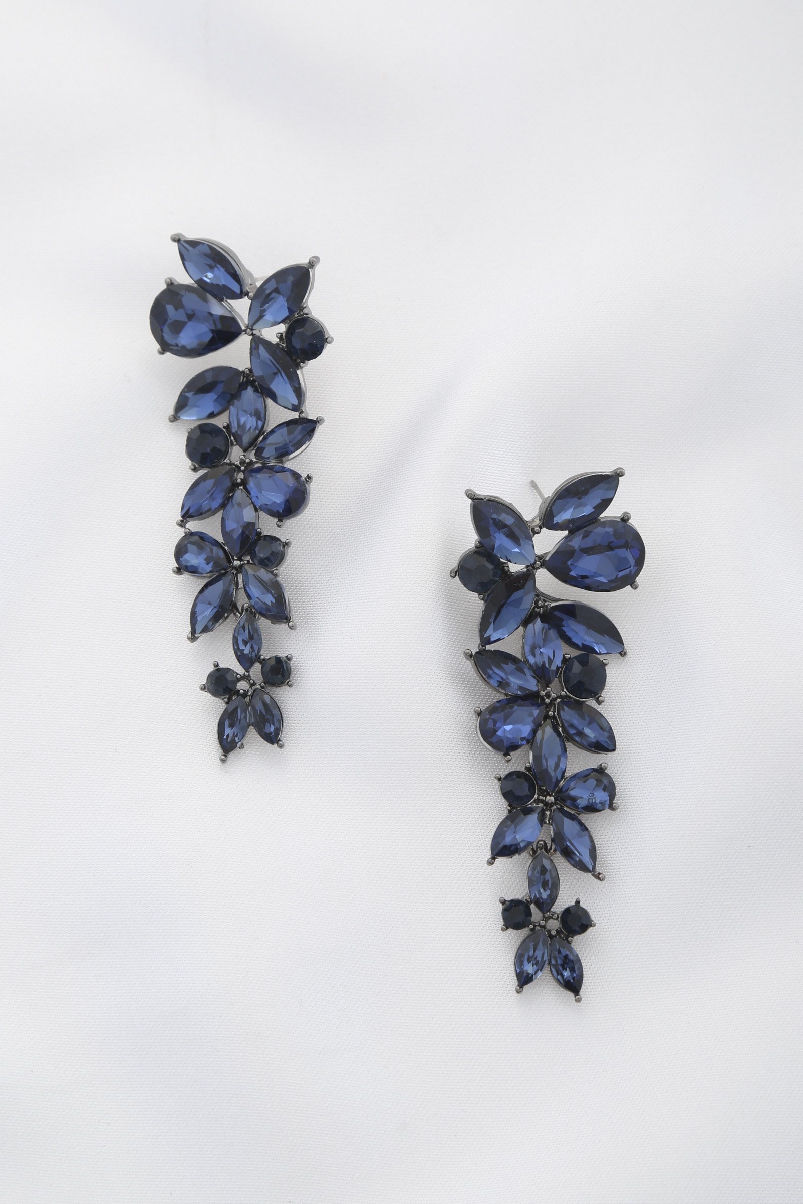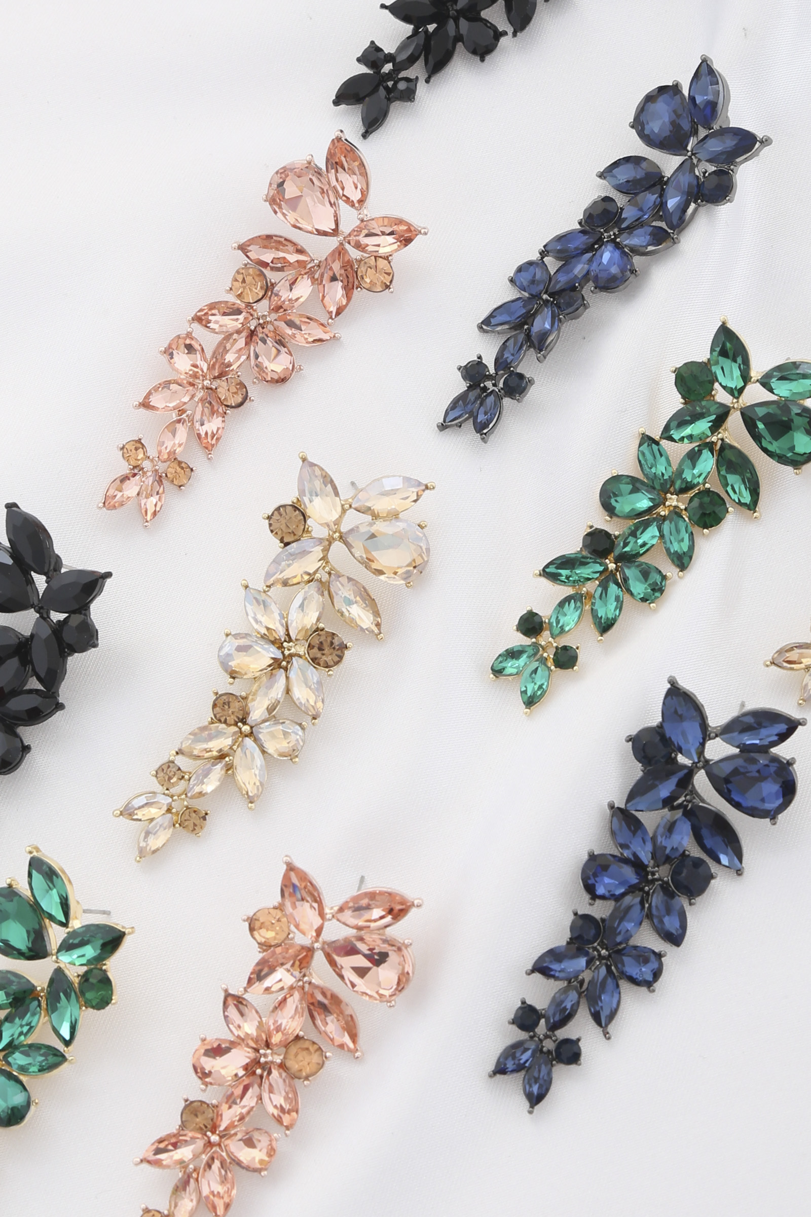 DOUBLE TEARDROP LEAF RHINESTONE EARRING