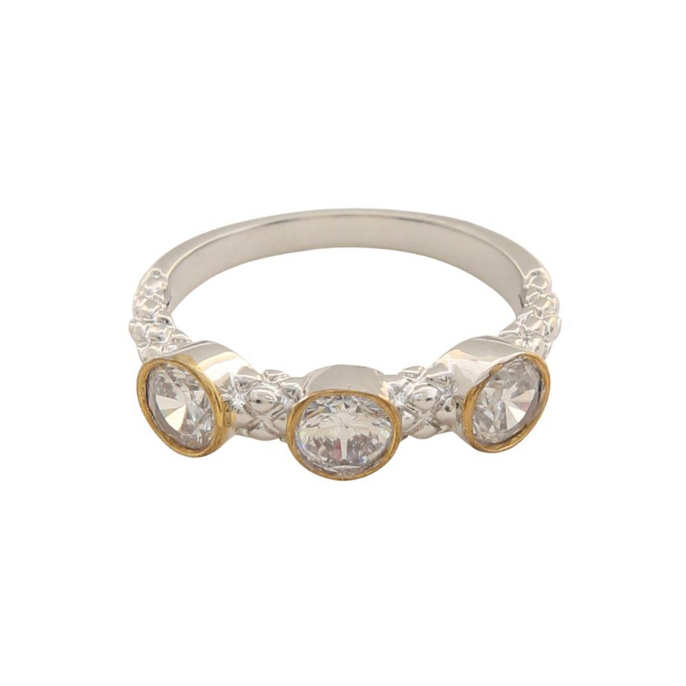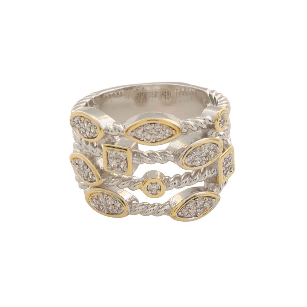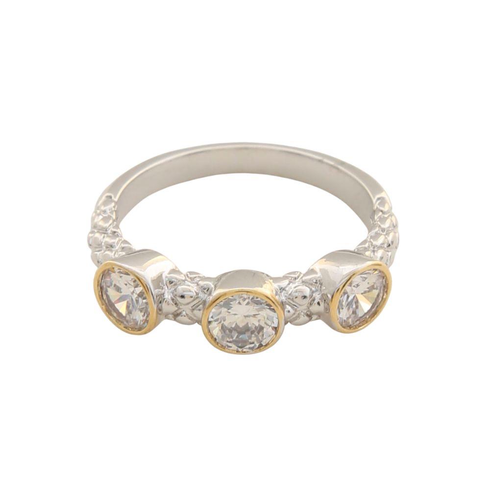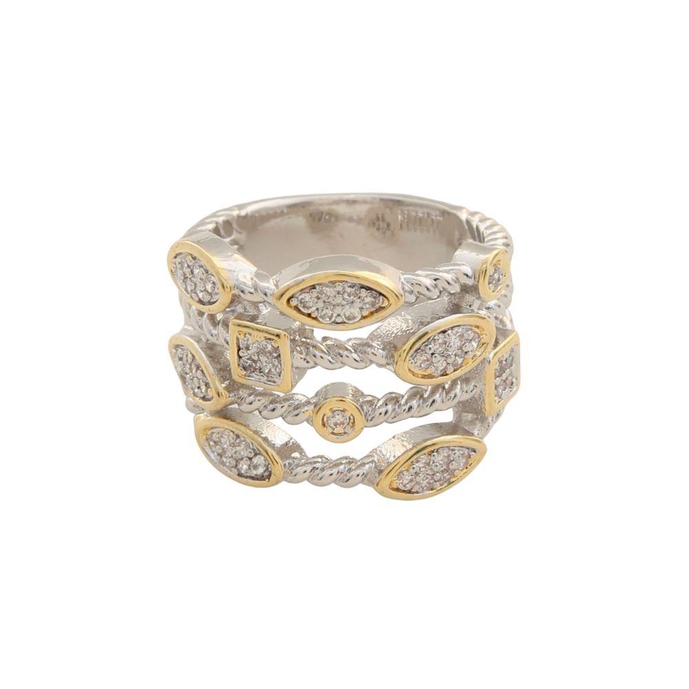 14K GOLD PLATED TWO TONE CUBIC ZIRCONIA CLEAR RING