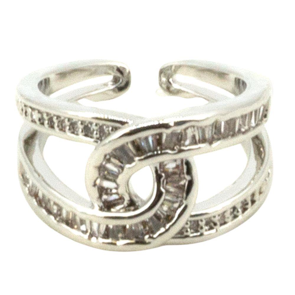 TEXTURED METAL RHINESTONE LINK OPEN ADJUSTABLE RING