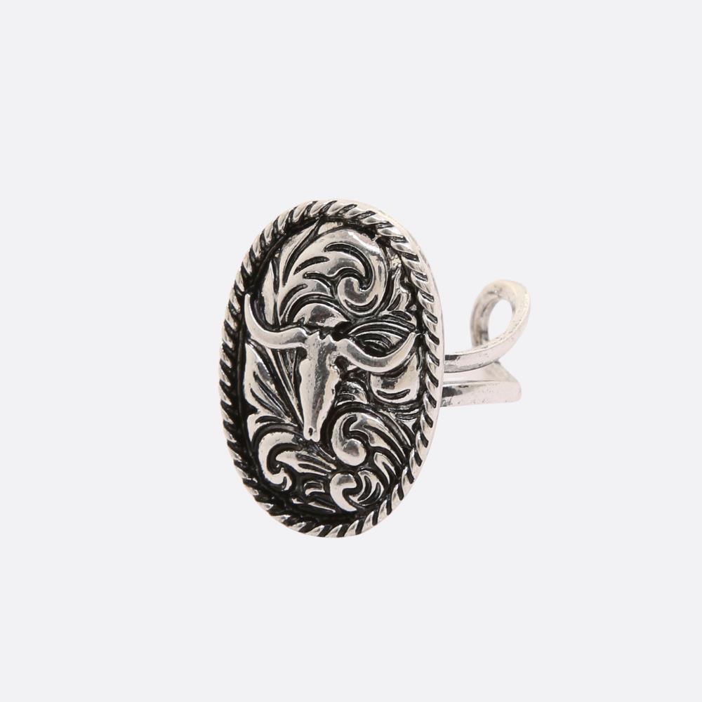 WESTERN OVAL TURQUOISE CATTLE SKULL ADJUSTABLE RING