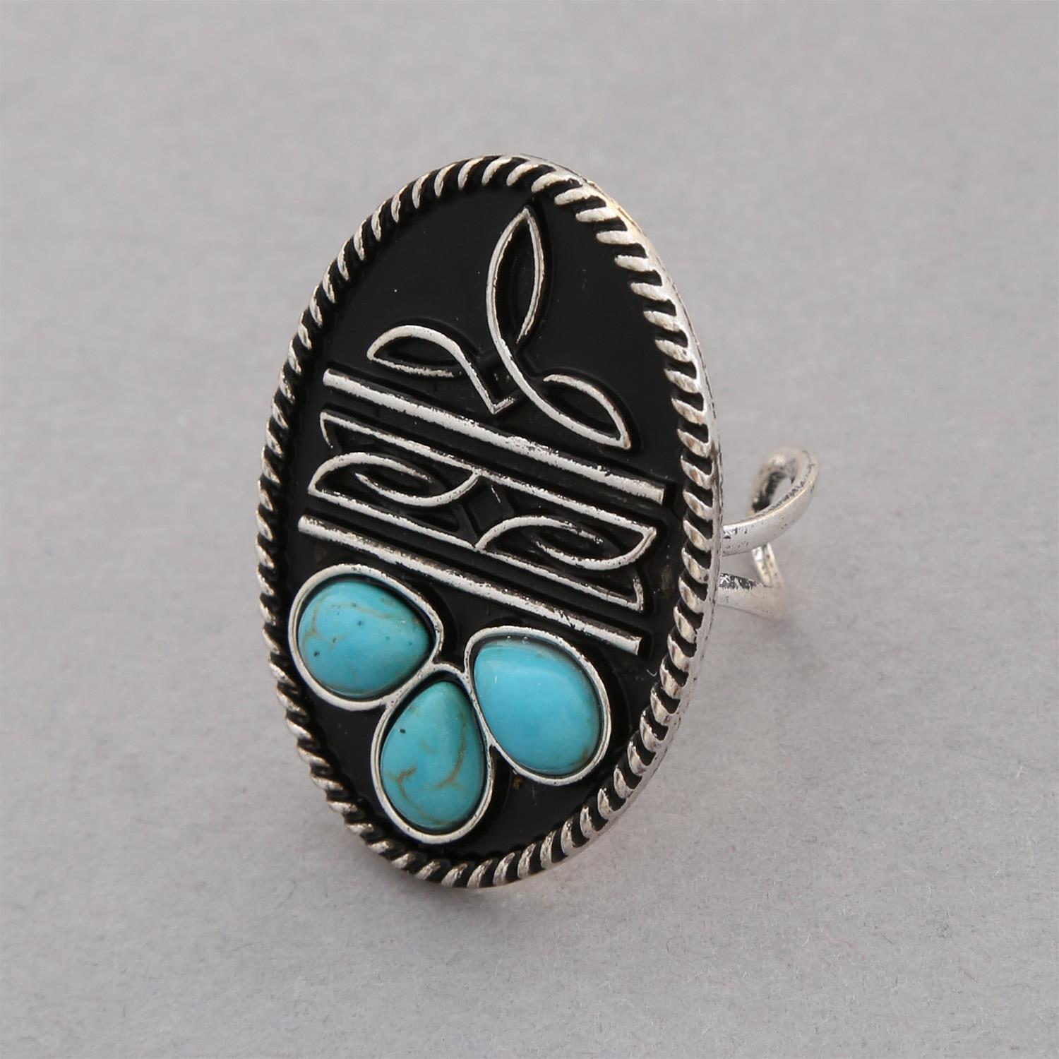 WESTERN STYLE TURQUOISE BEAD ADJUSTABLE METAL RING