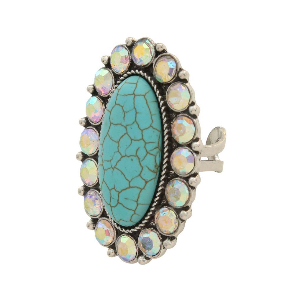 WESTERN TURQUOISE OVAL RHINESTONE ADJUSTABLE RING