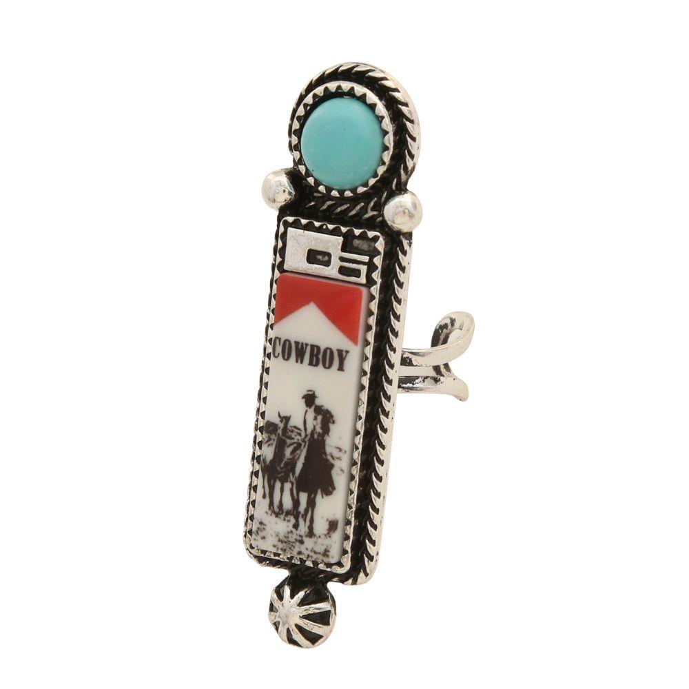 COWBOY CIGARETTE CASE ADJUSTABLE RING