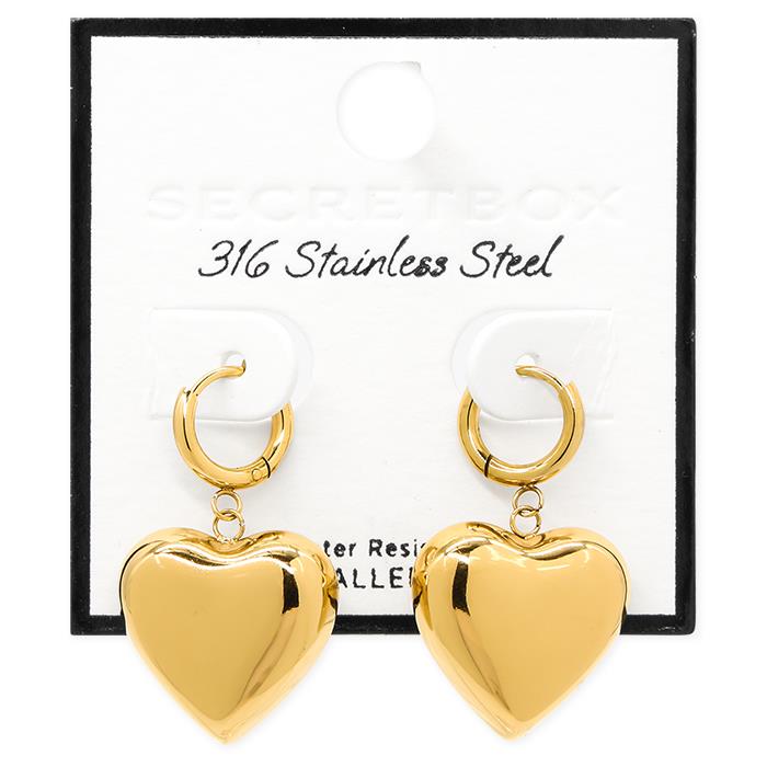 SECRET BOX STAINLESS STEEL DROP HEART EARRINGS