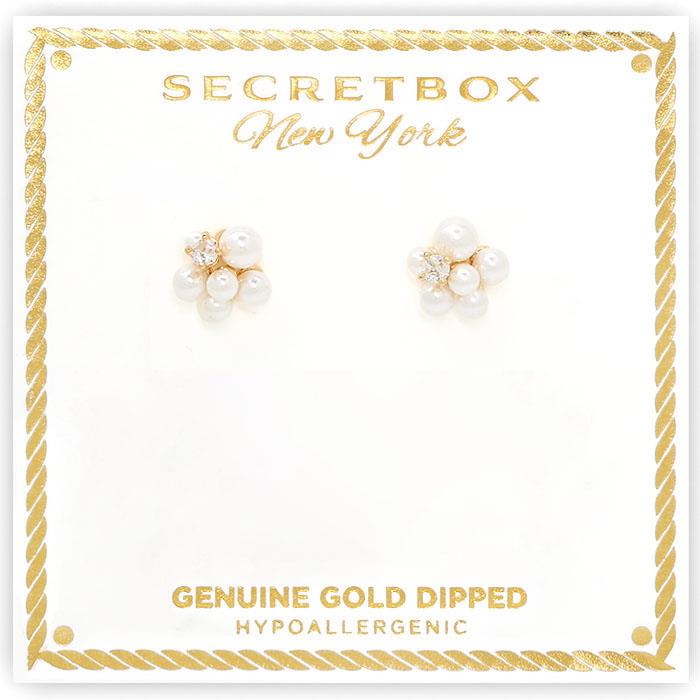 SECRET BOX GOLD DIPPED PEARL CLUISTER STUD SMALL