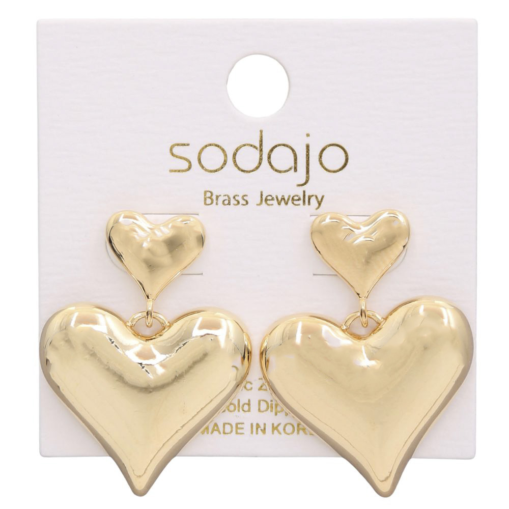 SODAJO DOUBLE HEART LINK GOLD DIPPED DANGLE EARRING