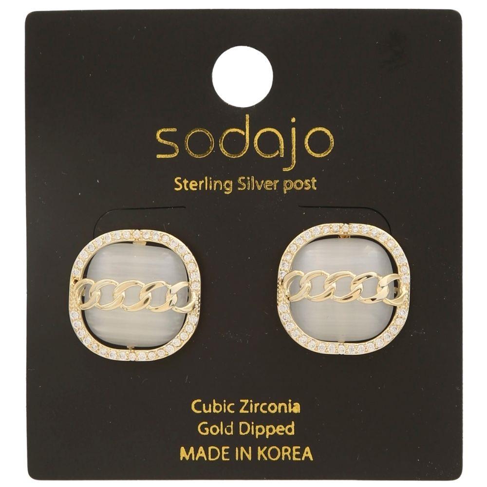 SODAJO CURB LINK STONE CZ GOLD DIPPED STUD EARRING