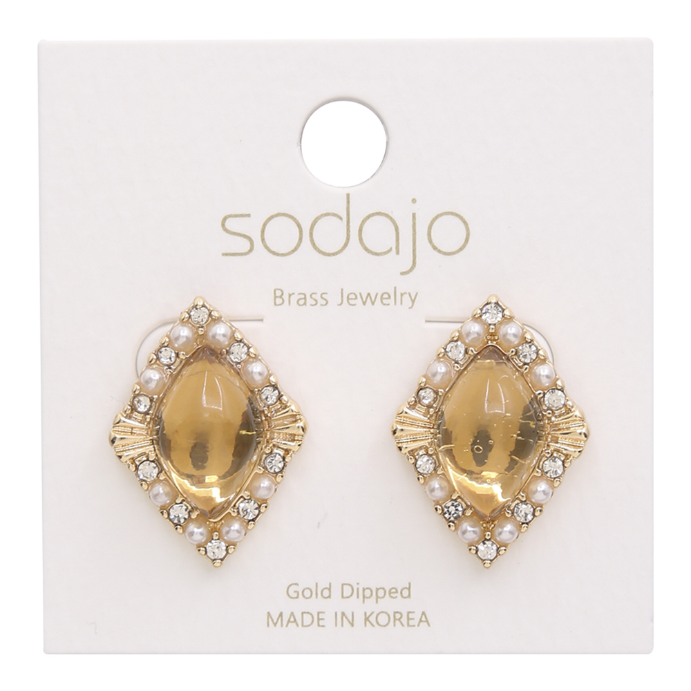 SODAJO RHINESTONE PEARL STUD GEM GOLD DIPPED EARRING
