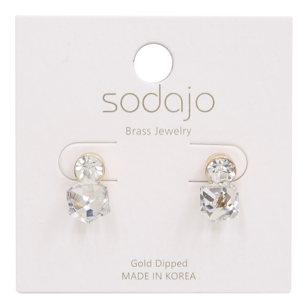 SODAJO SQUARE CRYSTAL GOLD DIPPED EARRING