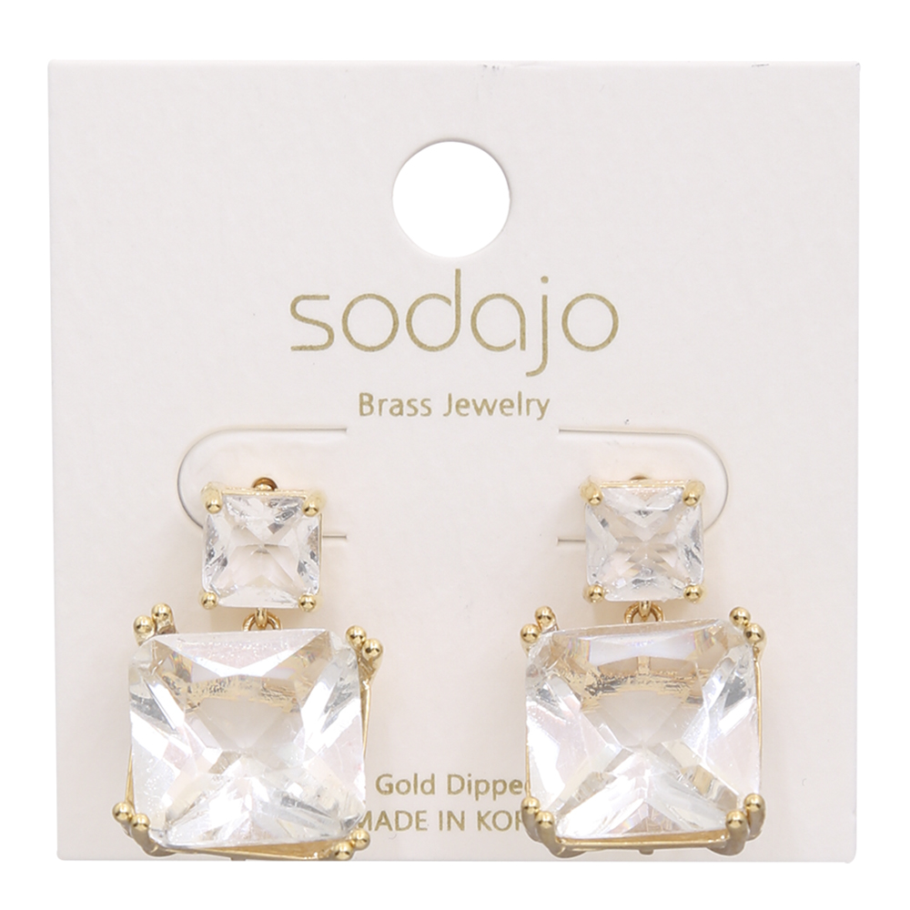 SODAJO SQUARE CRYSTAL DANGLE GOLD DIPPED EARRING