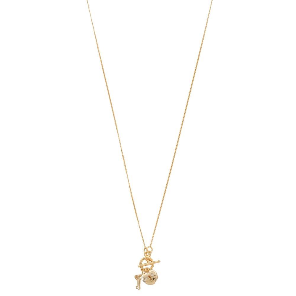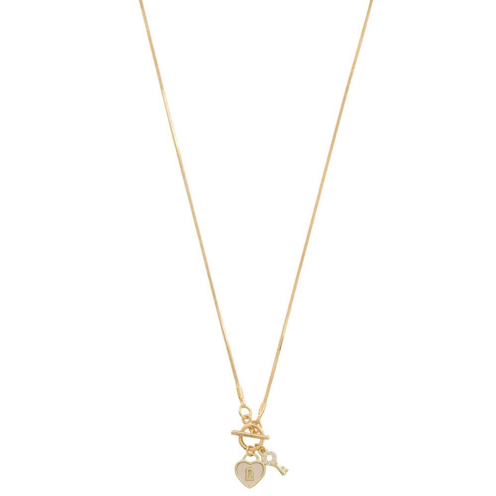 SODAJO DAINTY HEART LOCK KEY CHARM TOGGLE CLASP GOLD DIPPED NECKLACE
