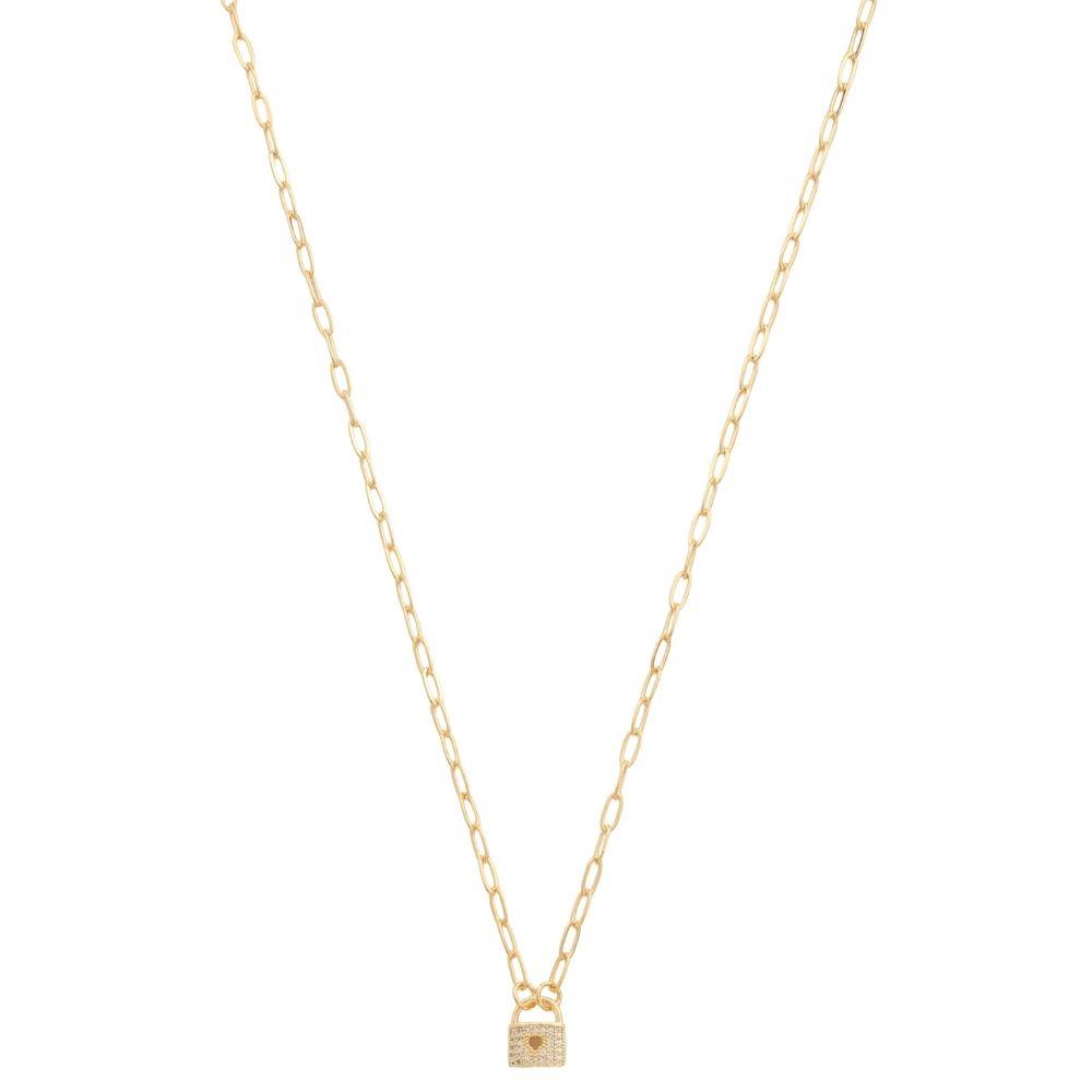 SODAJO RHINESTONE LOCK GOLD DIPPED NECKLACE